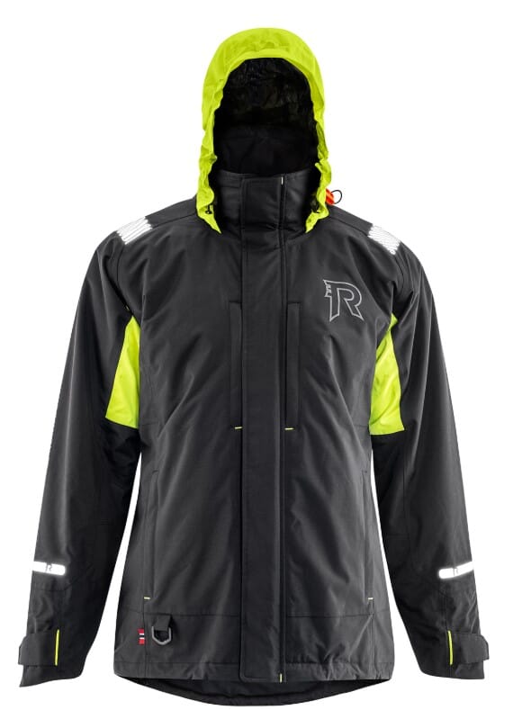 Flytejakken har tapede sømmer og et yttermaterial med en vannsøyle på 10 000 mm. Segmentert refleks er sveiset på skuldrene, mens kragen har fleecefôr. Jakken har også en hette som kan skjules i kragen, justeringer for bedre passform og en enkel skrittstropp.