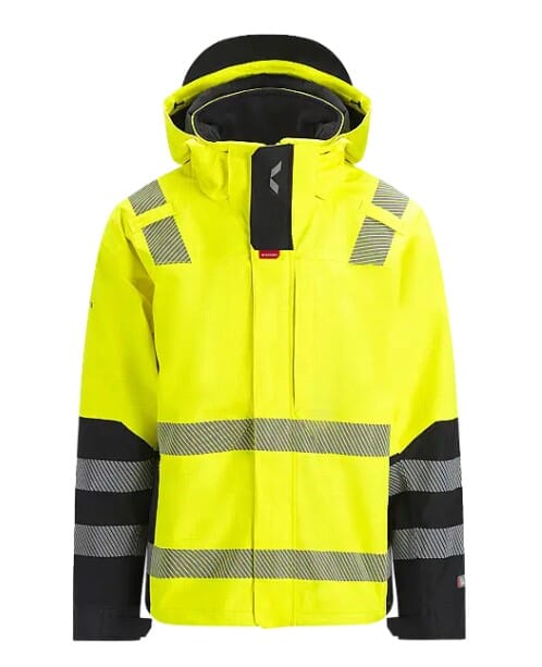 Med iboende flammehemmende egenskaper og en ELIM-verdi på 36 cal/cm2 og APC 2, er dette en vinterjakke som gir avansert beskyttelse hele dagen. Jakken er vanntett og har termiske egenskaper, slik at du holder deg både tørr og varm gjennom dagen. I tillegg er den antistatisk og sertifisert som synlig arbeidsbekledning.