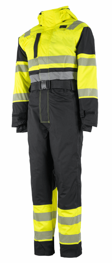 Vattert kjeledress med ekstremt mykt ytterstoff i 300D polyester stretch/PU laminert. Holder seg mykt også i streng kulde. Polyestervattering med vekt; 120 gr/m2 i kropp, 100 gr/m2 i armer og ben. Alle sømmer er tapet for å unngå vanngjennomtrengning. Stor napoleonslomme på bryst. Stormlomme bak klaff med plass til nettbrett. Segmenterte reflekser. ID kort lomme. Glidelås i ben helt opp til livet. Innvendige seler (avtagbare). En innerlomme. Dreneringsfelt nederst i ben. Stikklommer med glidelås. Kneputelommer. Mykt fleecefor i krage. Toppkvalitet OPTI glidelås i front. Nylonmansjett med tommelhull i erme. Borrelåsjustering v/erme. Avtakbar hette. Høy synlighet ISO20471 kl. 3. Vanntett etter EN343:2019 kl. 4,4 X
