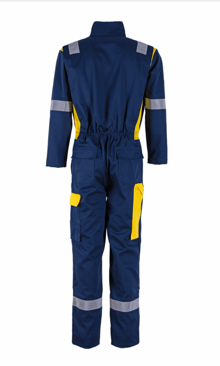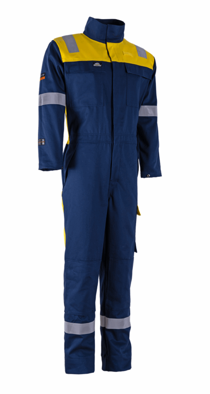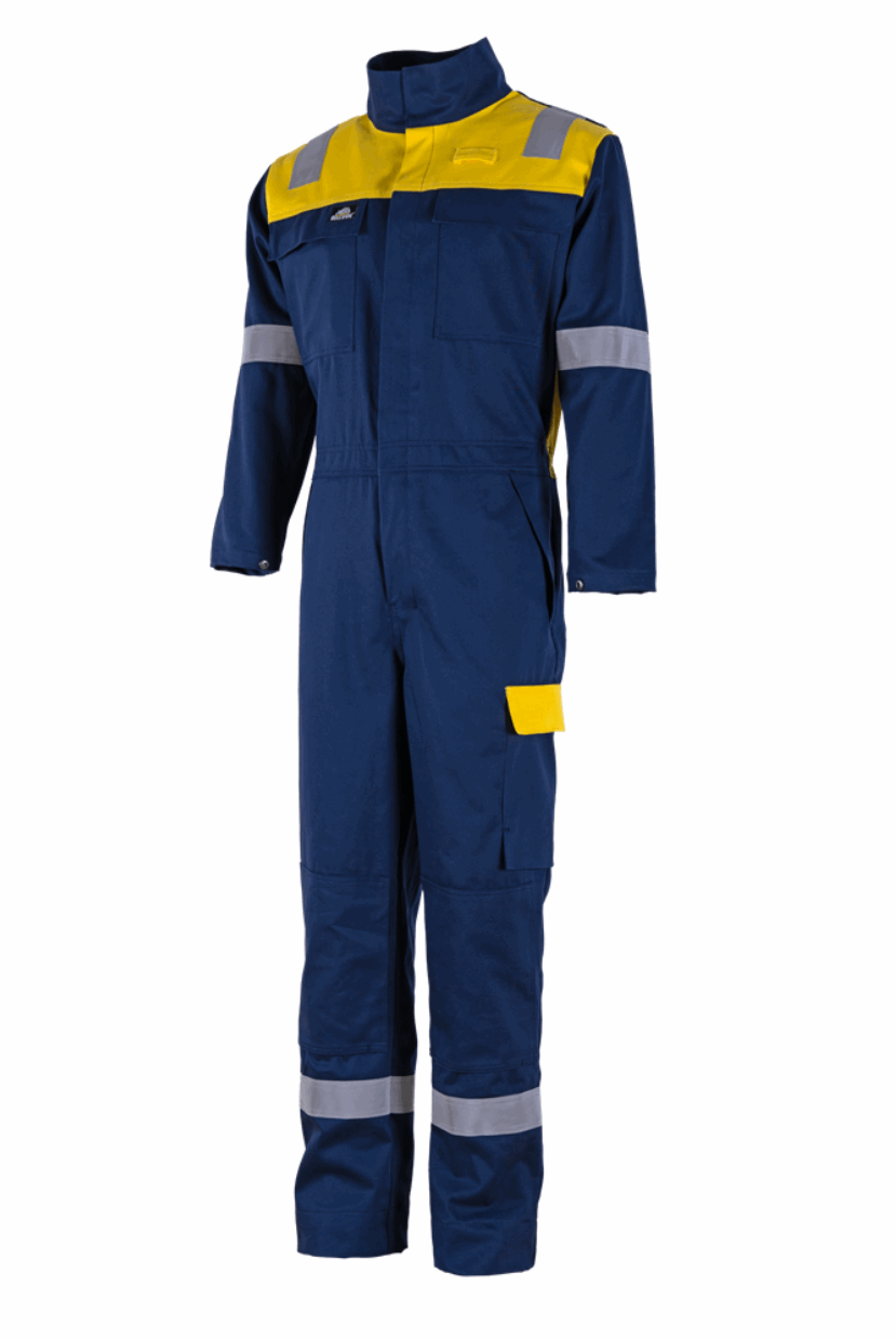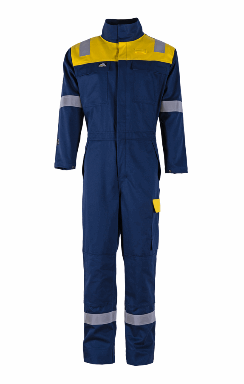Multinorm kjeledress, sateng-vevd 350 gr/m2 bomull, til bruk i industri, offshore og mekanisk industri. Offshore-reflekser over skuldre, på ben og ermer. Dressen har gode lommeløsninger; stikklommer, gjennomgrepslommer, ID-kortlomme, to brystlommer, mobiltelefonlomme og tommestokklomme. For behagelig bruk er det fold i ryggen og strikk i livet. Lengden på bukseben kan legges ut 7 cm.