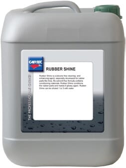 Rubber Shine er ett silikonfritt rense og forbedringsprodukt, spesielt utviklet til gummideler som matter og dekk. Denne løsemiddelfrie formuleringen inneholder balsamerende ingridienser.Rubbershine gir gummiens farge og glans tilbake.