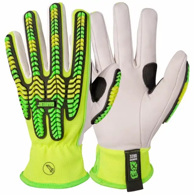 Geiteskinn i håndflaten, Spandex® på håndbak og mansjett, TPR impactbeskyttelse for økt sikkerhet.