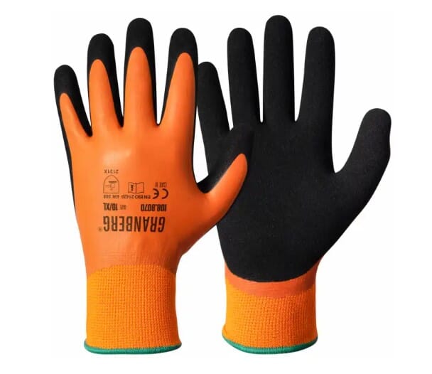 Svart sandaktig lateks i håndflaten sikrer et godt grep.