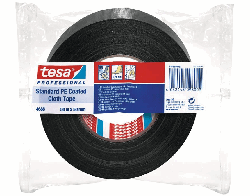 TESA TEKSTILTAPE PE-BELAGT SORT 50MMX50M