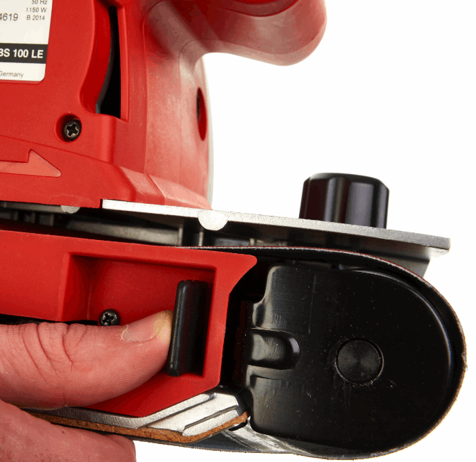 Innebygget turbin med optimalt støvavsug samtsponpose sikrer støvfritt arbeidsmiljø og begrenserslitasje på slipebånd