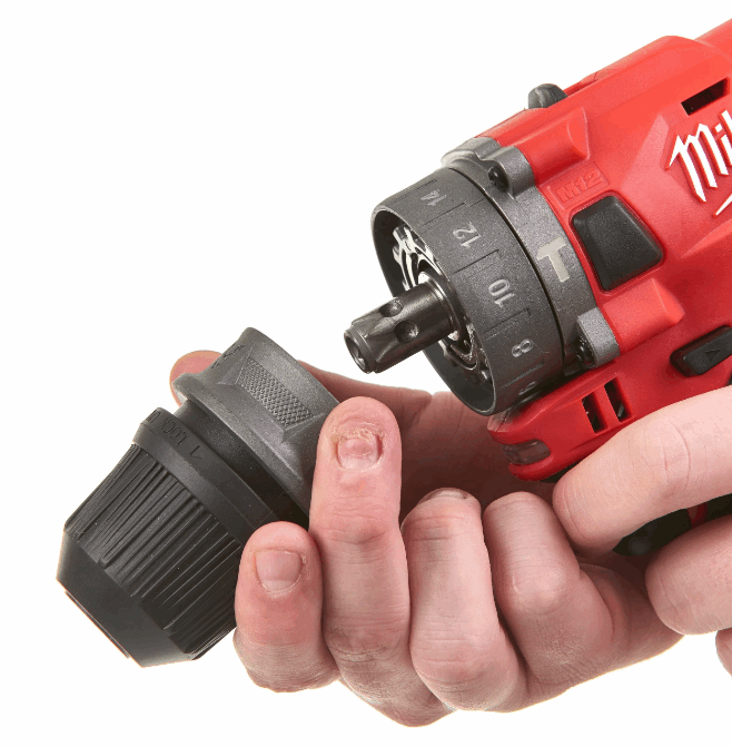 ¼" opptak under chucken for bruk med hex tilbehør og redusert total lengde på maskin til 138 mm