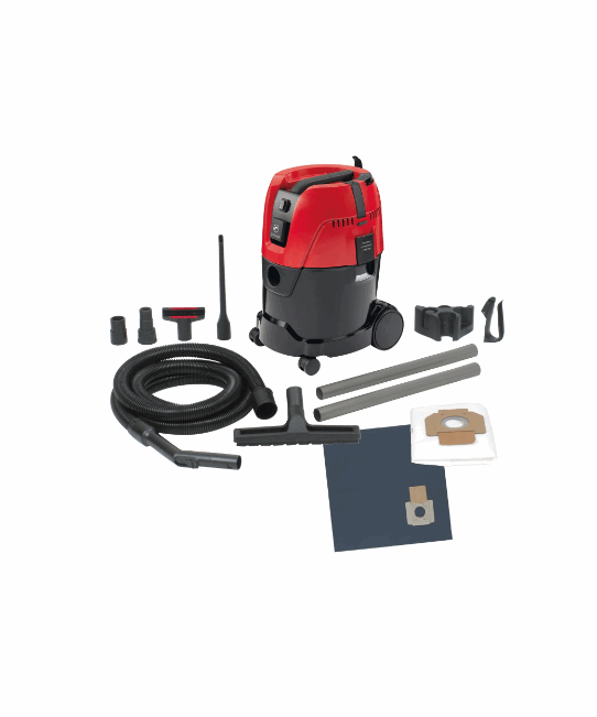 Leveres med 3.5 m slange og gulvsett, PET filter, 2 x elverktøyadaptere, 1 x papirpose, 1 x fleecepose, 1 x smalt munnstykke