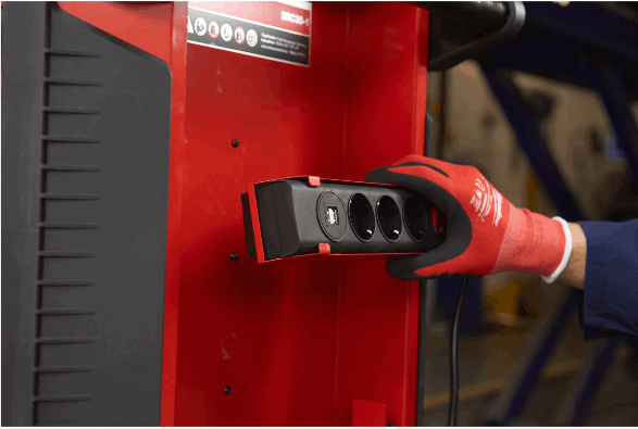 Magnetisk feste gjør det mulig å feste batterilader direkte på skapet.