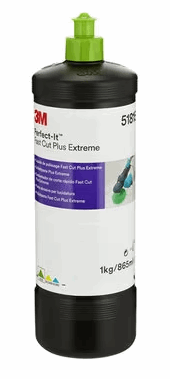 3M™ Perfect-It™ Fast Cut Plus Extreme er et hurtigskjærende flytende slipemiddel for rask fjerning av sliperiper etter slipe- og avnibbingsprosesser med 3M 260L P1500 og deretter Trizact 3000 og oppnå en høyglanseffekt på både ny og eldre billakk. Brukes med roterende eller eksenterpoleringsmaskin med grønn pad fra 3M™ sitt fargekodede system. 3M™ Perfect-It™ Fast Cut Plus Extreme er en del av den nyeste generasjonen med prisbelønnede, fargekodede produkter, laget for alle typer restaurering av lakkdefekter, som oksidering, overflateriper, riper fra bilvask, osv. Gir en overlegen glansfinish.