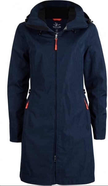 Sporty, feminin, lett og elegant frakk i urbant design, produsert i et mykt og behagelig materiale med lite overflatestøy, og med egenskaper som en teknisk skalljakke. Vanntett, vindtett, pustende, og med teipede sømmer. 2 utvendige og 1 innvendig lomme, og med avtakbar og justerbar hette.