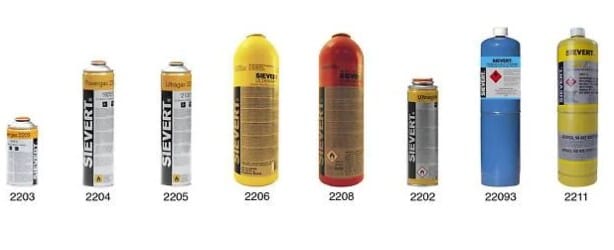 Engangs gassbeholder med sjelvstengende utløpsventil.