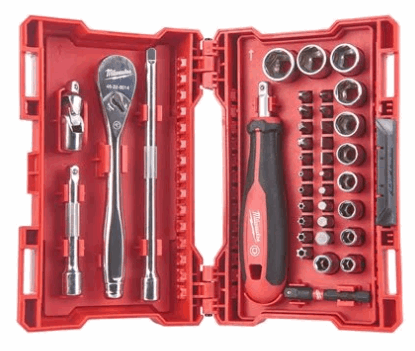 MILWAUKEE 1/4" SKRALLE, SKRUTREKKER, PIPESETT 38 DELER