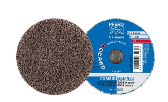 Robust fiberduk-skive for bruk med CDR-festesystem. Ideell for grov finish og effektiv forbehandling av overflater på metall og andre materialer. Hard utførelse gir høy avvirkning og lang levetid.