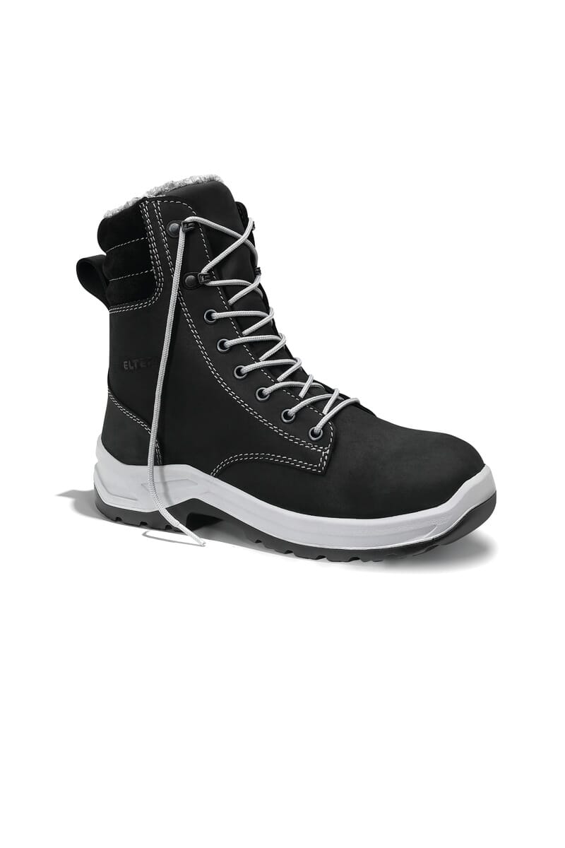 Vannavvisende nubuck lær/Microfiber. Fôret. Polstret pløse. Tåhette i stål. Innleggssåle i full lengde LADIES ESD sort. Metallfri spikertrampsåle. PU/PU LADY.