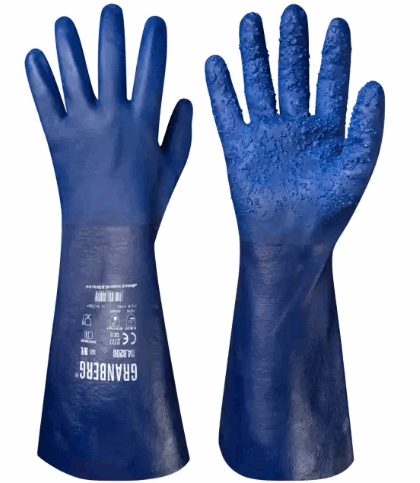 Nitrilbelagte med kraftige granulat på håndflaten og fingrene, bomullsfôr innvendig.