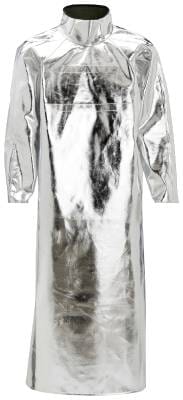 Knelang eller fotlang frakk. Doble sømmer. Tørkes med fuktig klut. Ikke maskinvask.Materiale: 70% Preox, 30% Paraaramid. Belegg: Aluminiumsfolie. Lukkes på baksiden.