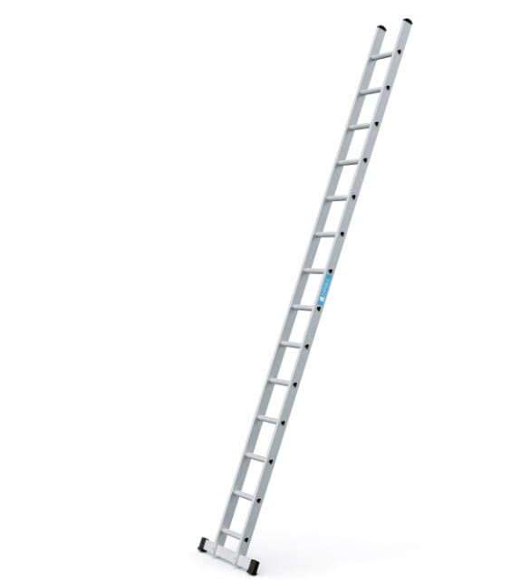 En stabil og solid enkelstige med 49 cm bredde for økt stabilitet og D-trinn som er gode å gå og stå i